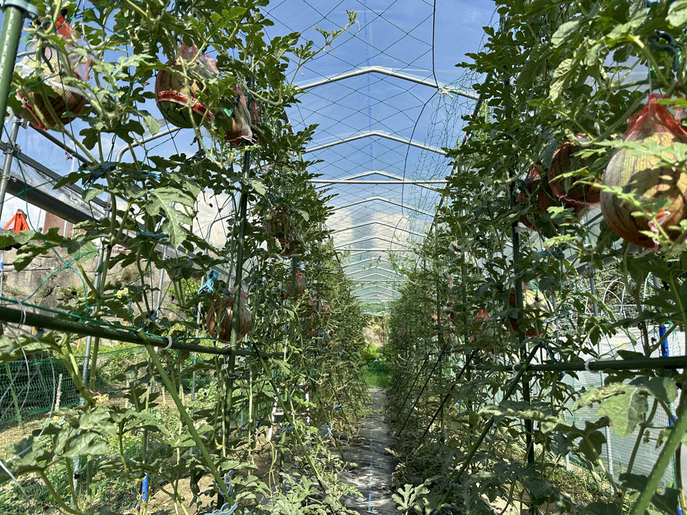 7月7日 片側だけで約30個弱がぶら下がっています。一番早い物のは受粉から36日経っているので、今年の本当の初収穫です。
